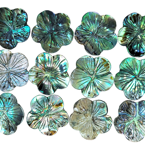 Description: NATURAL ABALONE HAND-CARVED FLOWER PENDENT. ALL PENDANT HAND CARVED MAY HAVE SOME SLIGHT DIFFERENCES BETWEEN THE COLORING AND PATTERNS.