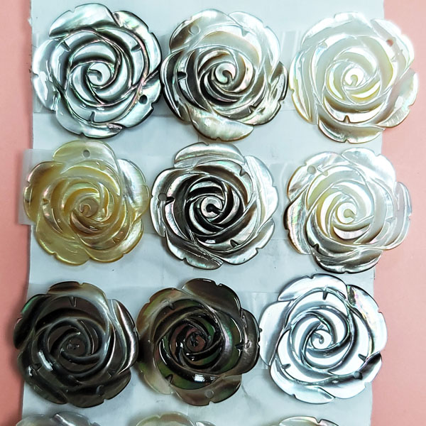 Description: NATURAL BLACK SHELL-HAND-CARVED FLOWER PENDENT. ALL PENDANT HAND CARVED MAY HAVE SOME SLIGHT DIFFERENCES BETWEEN THE COLORING AND PATTERNS.
