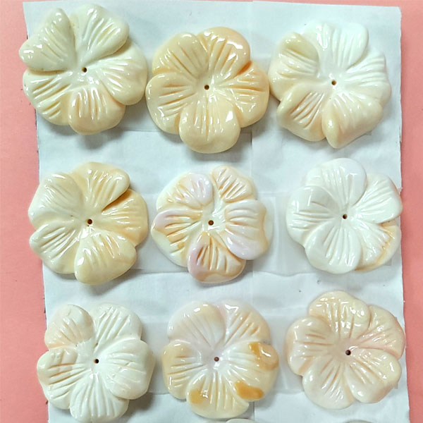 Description: NATURAL CONCH ORANGE SHELL-HAND-CARVED FLOWER PENDANT. ALL PENDANT HAND CARVED MAY HAVE SOME SLIGHT DIFFERENCES BETWEEN THE COLORING AND PATTERNS.