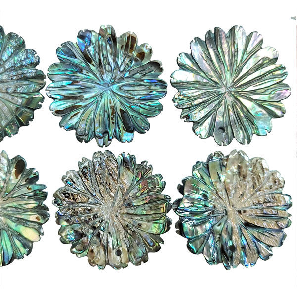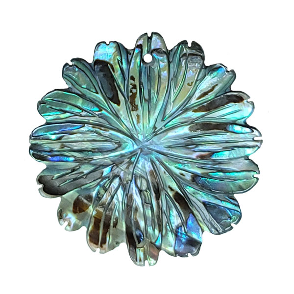 Description: NATURAL ABALONE HAND-CARVED DLOWER PENDENT. ALL PENDANT HAND CARVED MAY HAVE SOME SLIGHT DIFFERENCES BETWEEN THE COLORING AND PATTERNS.