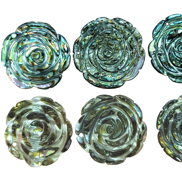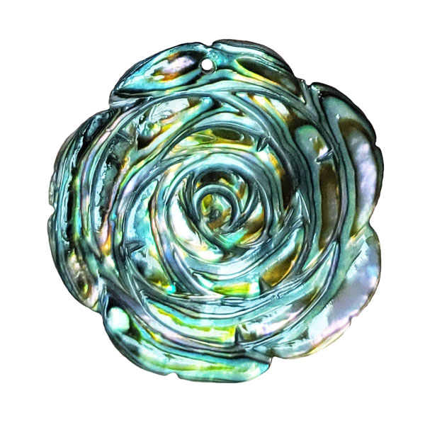 Description: NATURAL ABALONE HAND-CARVED DLOWER PENDENT. ALL PENDANT HAND CARVED MAY HAVE SOME SLIGHT DIFFERENCES BETWEEN THE COLORING AND PATTERNS.